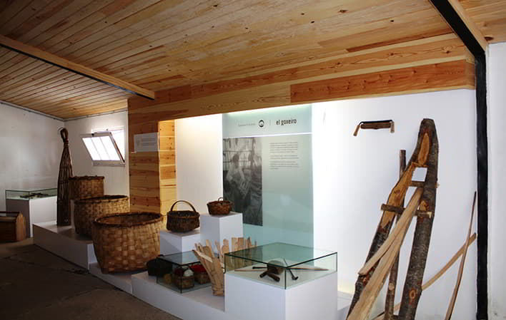 La exposición de los oficios —madreñeiro, carpinteiro, goxeiro, ferreiro y canteiro— se compone de útiles y herramientas necesarios para el desarrollo de cada uno de ellos, presentados de forma didáctica y complementados con vídeos que muestran el trabajo de los artesanos. Casi la totalidad de los fondos del Ecomuseo proceden de donaciones de los vecinos de Somiedo.