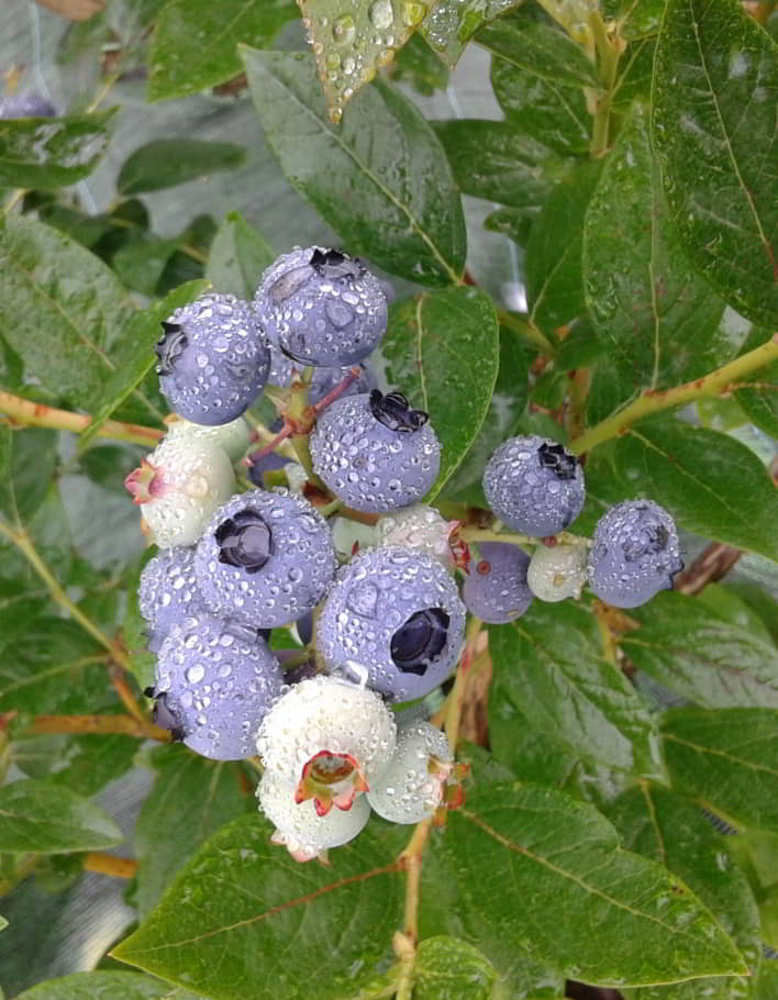 - Sommer: Fruchtbildung bei den frühen Heidelbeersorten.