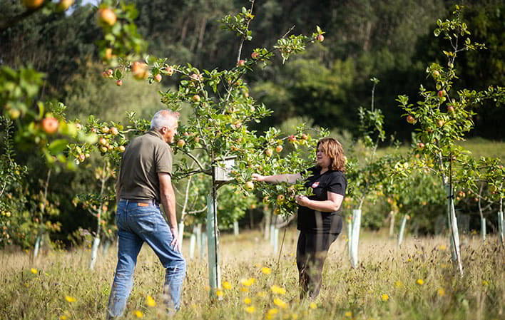 Begeben Sie sich auf ein einzigartiges Erlebnis in einem asturischen Obstbaubetrieb, wo Sie durch Apfelbäume mit bis zu 24 Sorten mit geschützter Ursprungsbezeichnung, Obstbäume, einen Obstgarten, einen bezaubernden Hühnerstall und einen Teich mit Enten und Fischen spazieren werden. Der begehbare und sinnliche Rundgang lädt Sie dazu ein, sich tief mit der Natur zu verbinden.
