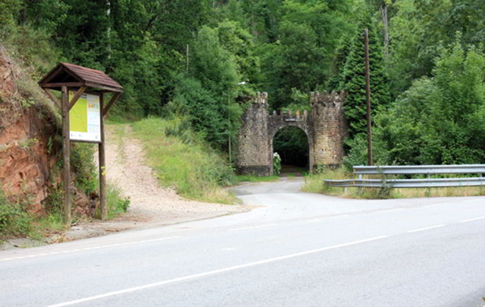 In Buslaz angekommen, biegen Sie gleich am Ortseingang um 180° nach links ab und gehen in Richtung der Kapelle San Juan, wo Sie einen Weg nehmen, der rechts von ihr abzweigt. Dieser Weg ist für Fahrzeuge nicht befahrbar und stark bewachsen, was den Verkehr manchmal erschwert. Wir steigen leicht an, um den hohen Teil des Gebirges zu erreichen, von wo aus wir einen schönen Blick auf die Umgebung haben. Bald kommen wir am Tandión vorbei, dem höchsten Punkt dieser Route. Kurz darauf werden wir von einem Gebäude mit einem großen Graffiti von Sietes begrüßt.