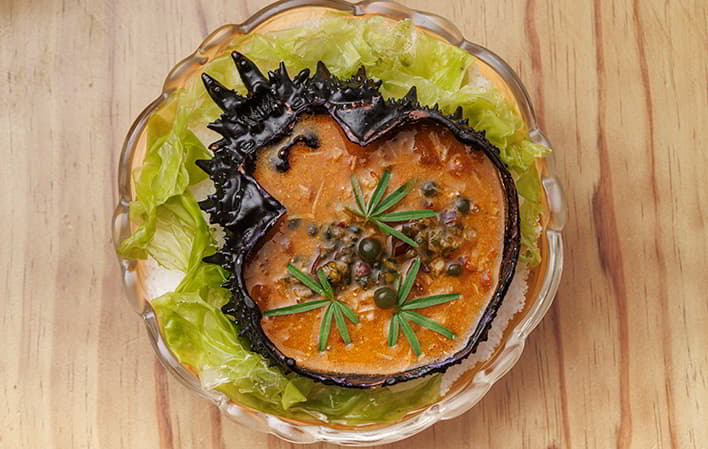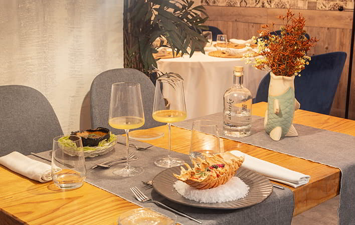El restaurante ofrece una experiencia gastronómica cercana y única, con showcooking y un menú basado en distintas categorías de pescados y mariscos (bivalvos, crustáceos, etc.). Además, cuenta con una barra gastronómica y un comedor íntimo. También destaca su uso innovador de materiales naturales, como conchas y cáscaras para el emplatado.