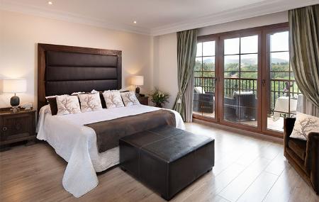 Hotel of Indian architecture with very spacious rooms, balcony or terrace, very bright, soundproofed, with hydromassage bathtub, 32" flat screen TV, minibar, safe, king size beds. Free parking and free wifi.