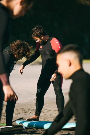 La escuela está equipada con material de alta calidad, tanto para adultos como para niños, y dispone de trajes de neopreno y tablas adaptadas a las condiciones del mar y a cada nivel de surf.
