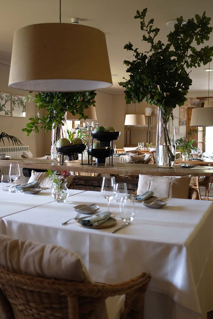Dispone de un salón con chimenea y cuidadas terrazas con vistas a su privilegiado entorno, donde los clientes pueden disfrutar de una comida tranquila y relajarse en un ambiente sereno.