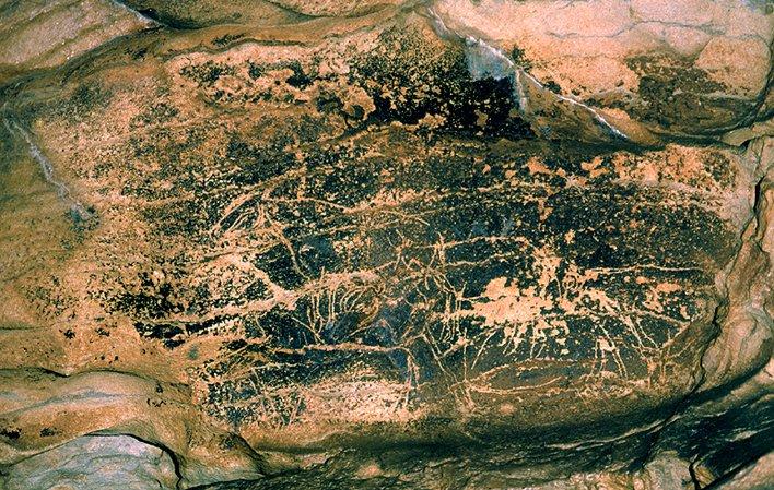 It has a Magdalenian archaeological deposit and several artistic manifestations engraved on its walls, including representations of animals, among them several bovines and a horse. It is recognised as one of the classic stations of Palaeolithic cave art in Asturias, which gives it international recognition.