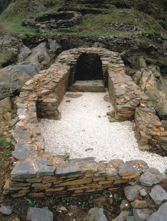 These large constructions are common in fortified settlements and are interpreted as buildings for communal use. Something similar to what happens with the two saunas. These are unique buildings, common in the Navia hill forts, with a rectangular floor plan, false vault roofs with a semicircular head in the oldest one and a quadrangular head in the second one.