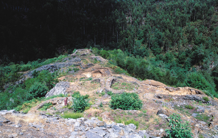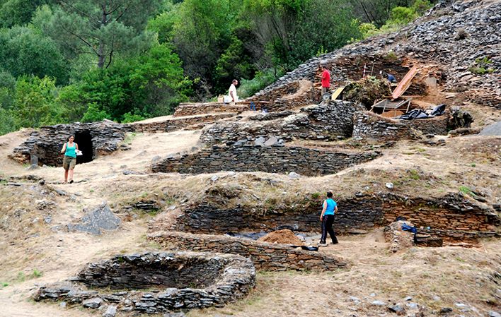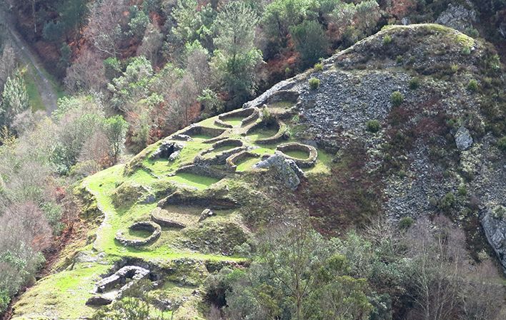 The castro has been described as an enigmatic settlement due to the striking disproportion between the monumental fortifications (moats and walls) and the reduced enclosure they protected, in which barely a dozen huts have been exhumed.