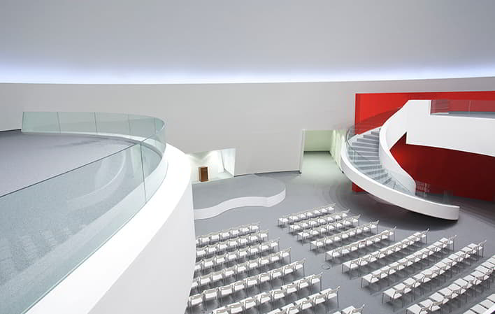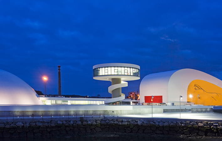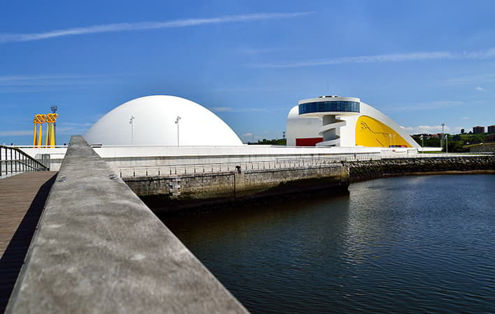 This great architectural complex in the surroundings of the Avilés estuary is the only work of the Brazilian architect Oscar Niemeyer in Spain. Music, cinema, theatre, dance, exhibitions and the spoken word are the protagonists of a multidisciplinary cultural programme with a common denominator: excellence. The centre is made up of the following spaces: