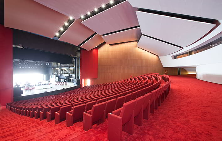 The stage of the Auditorium stands out for its sound qualities, as well as its size and functionality, as it can open onto the square and offer shows for up to ten thousand people.