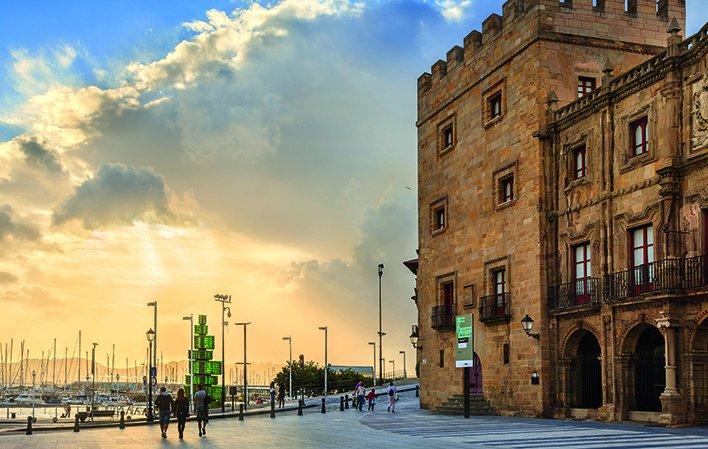 El palacio, situado frente al puerto deportivo de Gijón/Xixón y junto a la estatua de Don Pelayo, es una construcción del siglo XVIII, aunque una de sus dos torres es originaria del siglo XV.