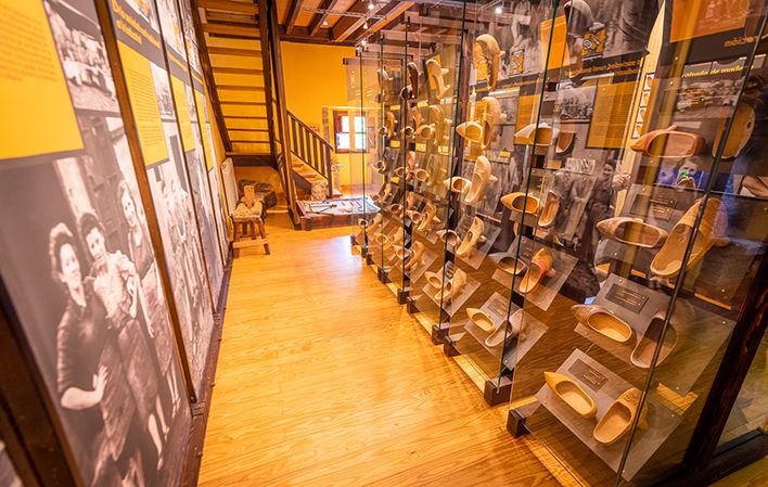 Imprescindible para moverse por los embarrados caminos de la región, la madreña, aunque tan asturiana como la sidra, no se utilizaba únicamente en estas tierras. Muchas regiones del norte de España y de Europa han recurrido a esta práctica solución indispensable en climas húmedos y lluviosos. Ejemplos de todos esos lugares están representados en este singular museo.