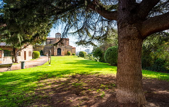 San Julián de los Prados, also known as Santullano, is one of the most remarkable medieval works in Europe, and a jewel in the crown of Spanish cultural heritage. It is located in the city of Oviedo/Uviéu and is a must for lovers of cultural tourism. The interior of this church is home to the best-preserved mural paintings from the 9th century in Europe. By stopping to admire them, we enter a fascinating chapter in the spirituality of the High Middle Ages.