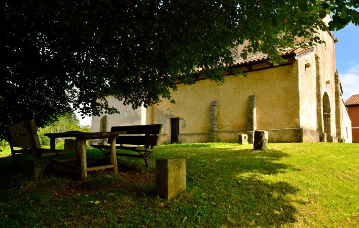 Iglesia prerrománica, erigida en el año 921, según varios epígrafes grabados en el revoco de sus pilastras y desaparecidos hacia el año 1922.
