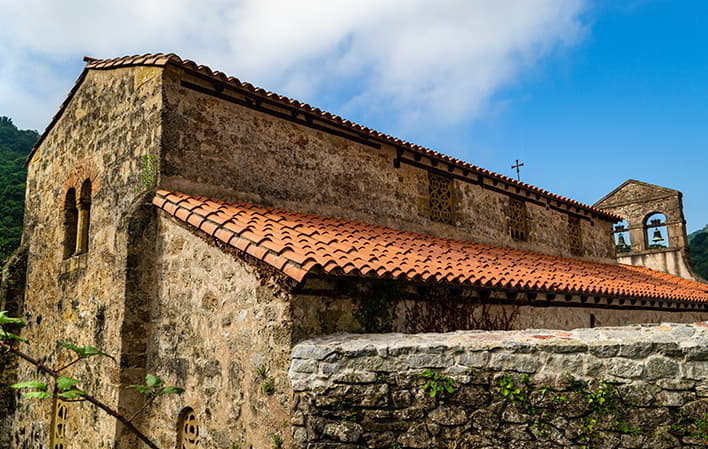 In the heart of the idyllic Trubia valley, in the town of Tuñón (municipality of Santo Adriano), we find one of the most emblematic churches in Asturias. Declared a National Monument in 1931, it formed part of a Benedictine abbey in the 9th century and was endowed with land and an entire village at its disposal to support the monks, provide aid to the poor and offer lodging to pilgrims.