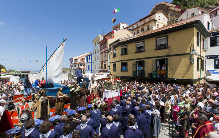 The verses of L'Amuravela contain historical references to the harbour, fishing, cosmopolite and seafaring characteristics of the town, together with social and religious pleads. This is a unique spectacle right in the amphitheatre of Cudillero, under full sail, in a colourful and fishing setting tastes of sea and tradition. And the fiesta commences to last several days with the blessing of San Pedro, the patron saint of Cudillero.