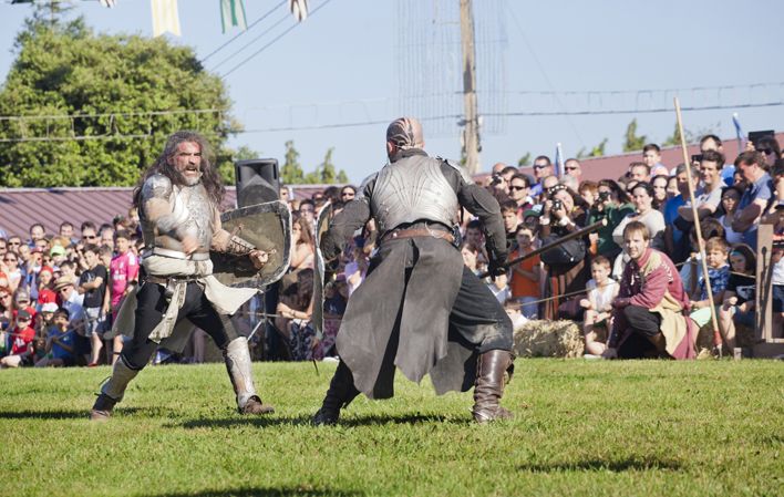 The "Exconxuraos" are held at the Llanera fairgrounds, where activities and shows take place throughout the weekend, with the aim of providing a setting that puts visitors in a situation that takes them back to medieval times. Different ribbons, banners, shields, warriors, jesters, knights, musicians, etc., add colour to this medieval festival which is already a reference not only at regional level, but also at national level.