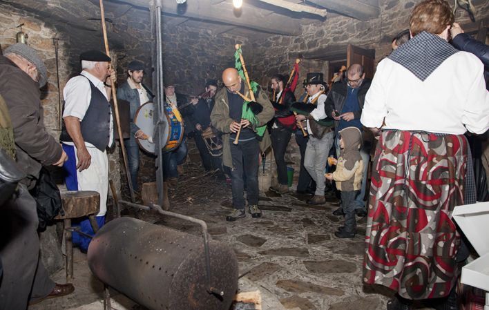 Furthermore, different artisans - woodworkers, basket weavers, blacksmiths, etc. - set up their demonstrations under the "paneras" (typical Asturian raised granaries) and in the stables. Meanwhile, the younger ones distribute the "garutsa," homemade cherry liqueur, "orujo" (a strong alcoholic beverage), and drinks that help ward off the November cold since this festival always takes place in the first half of the month.