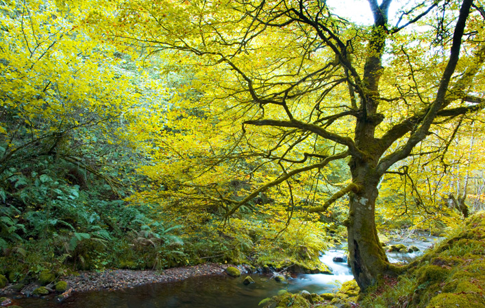 It includes the Munieḷḷos and La Vilieḷḷḷa mountains (Cangas del Narcea) and the Valdebois mountain (Ibias). The Muniellos Forest, the largest oak forest in Spain and one of the best preserved in Europe, is home to a true virgin nature that is reborn every season with surprising examples of its adaptation to the environment. Always changing, it is a clear example of the Asturian paradise at all times of the year. Oaks of different species and up to six metres in diameter, beech and birch trees are dotted with the continuous presence of holly and yew trees, the perennial kings of the Muniellos autumn.