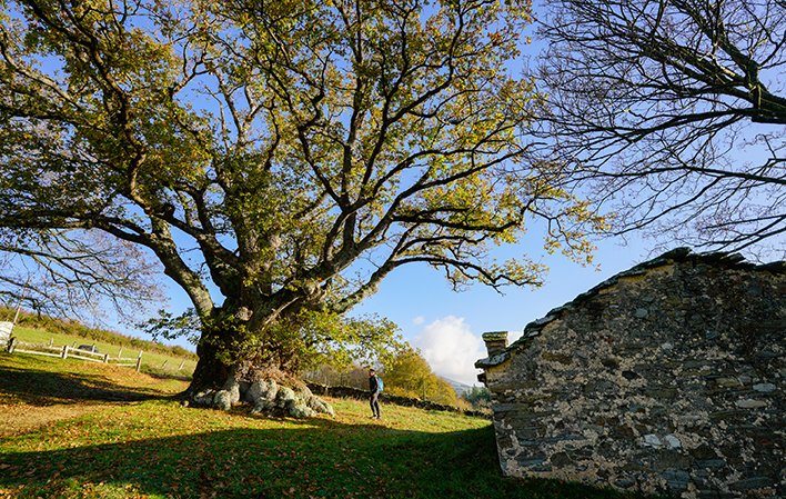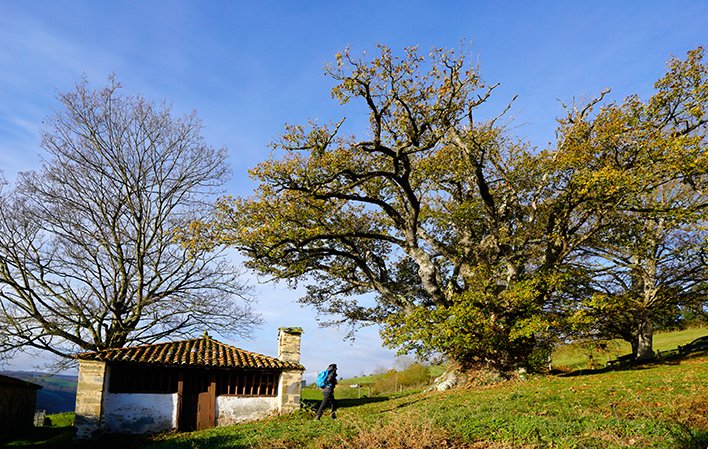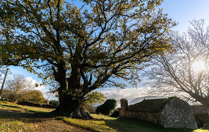 The Carbayón de Valentín is located in the municipality of Tineo, in the village of Valentín, next to the chapel of San Pedro.