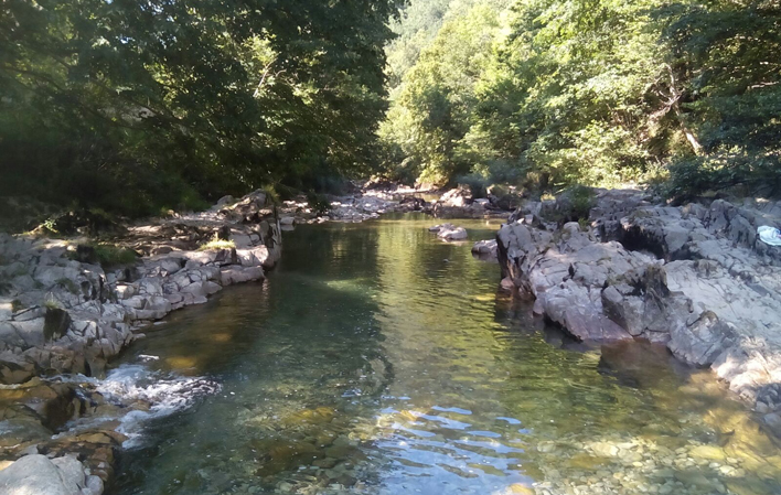 It flows into the River Sella on the outskirts of the village of Tornín and near its mouth, on the border between the municipalities of Amieva and Cangas de Onís, there is a very beautiful and attractive pool called Olla de San Vicente.