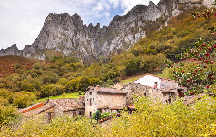 In the Central Massif we find the highest peaks of the Cantabrian Mountains in the steep Urrieles, where the most emblematic landmark of the Picos de Europa rises: the immense beauty of the Picu Urriellu or Naranjo de Bulnes. Its 2,519 metres of complicated orography have not prevented human settlement, and the village of Bulnes is famous. Until 2001, it was only accessible by a narrow and steep path in the mountain. Since then, access has become easier thanks to the funicular railway that crosses the mountain from the village of Poncebos.