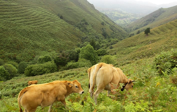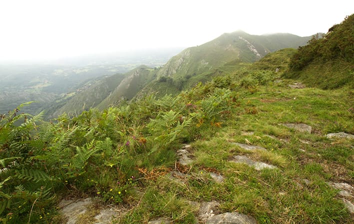 After walking 1.5 kilometres, we arrive at the Sellón field, located at the foot of Picu Facéu, which is the original starting point. Take the path on the left. After another kilometre, we descend along the old road, which is still visible and from which we can enjoy beautiful views. After approximately 4.6 kilometres, we reach another field, which we cross to get back on the path and continue descending.