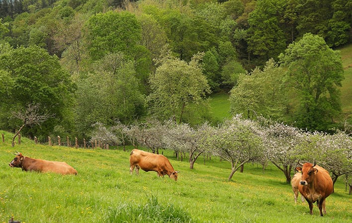 Surrounded by hórreos and paneras, a distinctive feature of Sietes that speaks of the agricultural character of the village, we begin our route in the direction of Covadonga. The descent towards the valley of Borines takes us through the interior of ancient oak and chestnut groves and then opens up at the bottom of this fertile valley watered by the river of the same name.