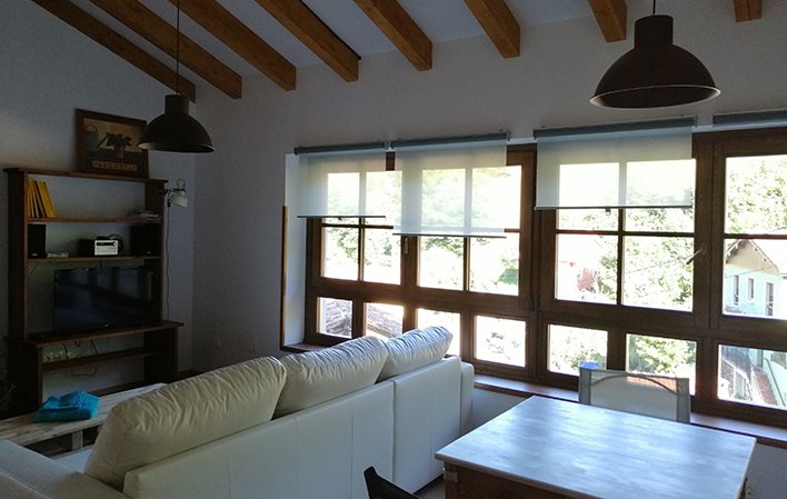 En el salón hay además un sofá cama para una tercera persona. Cada apartamento tiene una amplia terraza y un pequeño jardín de uso particular con hermosas vistas, con entrada y zonas exteriores independientes.