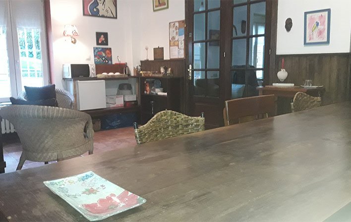El albergue está ubicado en una casona asturiana con muchas ventanas, buena ventilación y luz natural