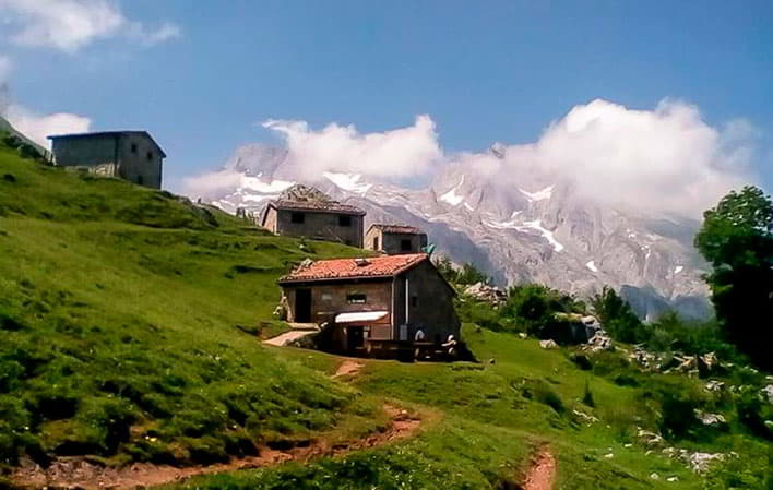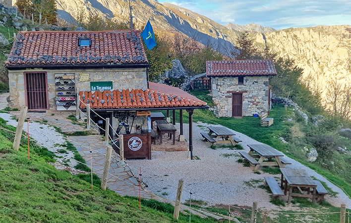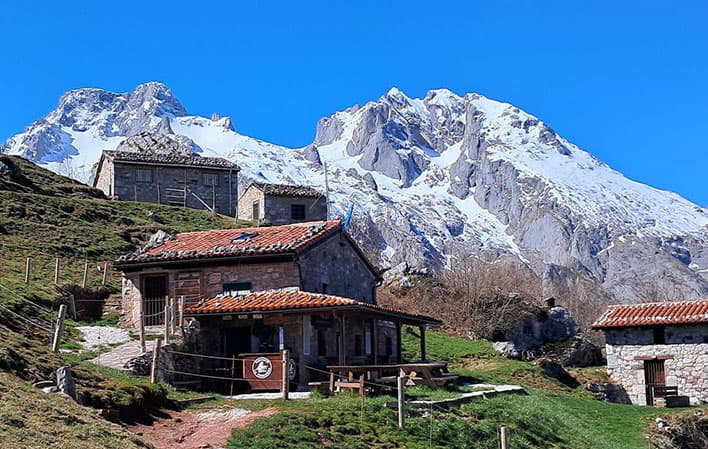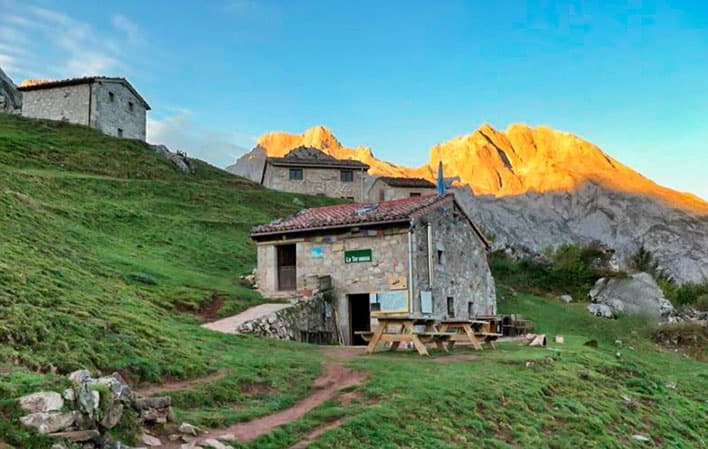 The refuge is located in the Terenosa sheepfold, 40 minutes from the Pandebano pass on the way to Urriellu, in a bucolic landscape surrounded by shepherds' huts and pastures where cattle graze in summer.
