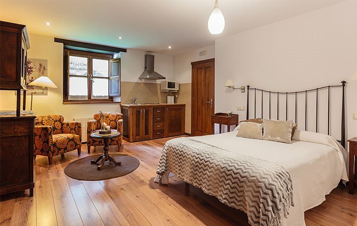 Surrounded by dense forests of chestnut, oak and birch trees in the small village of Palacio de Naviego, just ten minutes from the Leitariegos ski resort and just over half an hour from the Muniellos Biosphere Reserve.