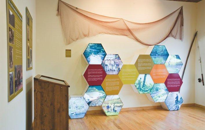 A través de diferentes soportes (audiovisual, fotográfico e informático) se puede conocer el río Eo, las diferentes especies que lo pueblan o la relación del hombre con el río, cómo el ser humano ha aprovechado en su beneficio la riqueza que le ofrecen sus aguas y, sobre todo, la importancia que ha tenido la pesca en la zona. Exposición de objetos y útiles, tanto tradicionales como modernos, relacionados con la actividad pesquera. Cañas, moscas, redes, carretes, nasas, fisgas, ganchos, cestos... ayudan a entender lo que significó la pesca en el Eo durante gran parte del siglo pasado.