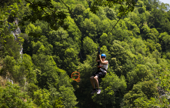 Ponga, cuyo territorio está declarado Parque Natural y Reserva de la Biosfera, es un paraíso para el turismo activo. A las inmensas posibilidades de senderismo, en lugares tan emblemáticos desde el punto de vista de la riqueza boscosa como el tupido hayedo de Peloño, está la posibilidad de disfrutar las aguas bravas y practicar rafting o barranquismo, éste último en los cañones de Vibuli y Carangres. Ponga ofrece, por tanto, todas las versiones del agua: ríos de alta montaña, como el Ponga y el fronterizo Sella, cascadas, cañones y también aguas termales de alta calidad en el Balneario de Mestas. Para completar una piscina pública con unas vistas increíbles al Tiatordos y al cordal de Ponga.