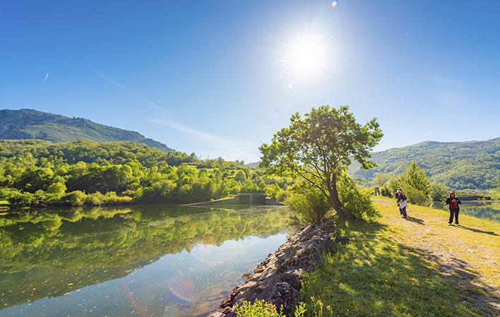 Embalse, formado por el río Nalón, que se encuentra situado a 4 Km de Rusecu/Rioseco (capital de Sobrescobio) y a 42 km. de Oviedo/Uviéu.