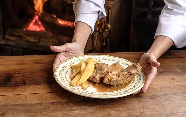 Es contundente el pote asturiano y suaves les fabes con setas silvestres. Las recetas de siempre se aplican también a los callos, la carne gobernada y la exquisita repostería. La carta es amplia, de temporada, géneros de calidad y enriquecida con las múltiples jornadas gastronómicas que durante el año, se van sucediendo.