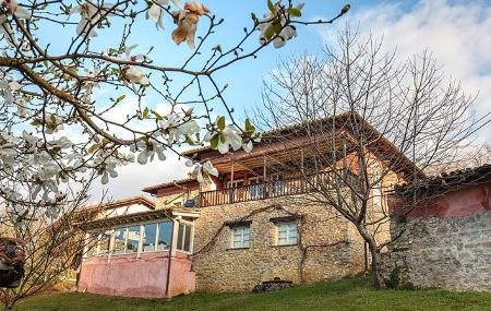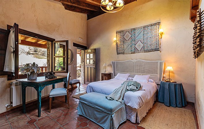 Gran finca de castaños, nogales, laureles, cerezos, avellanos y una pomarada. 6 dormitorios matrimoniales con baño. Muebles de época, juegos de mesa, peliculas infantiles y servicio de canguro.