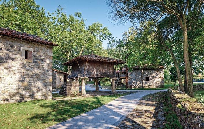 Dans le parc, on trouve des greniers à blé et des greniers à grains des XVIIIe et XIXe siècles. On y trouve également plusieurs terrains de boules pour jouer aux différents types de boules qui existent dans les Asturies, une exposition d'outils agricoles, une maison paysanne du centre des Asturies au rez-de-chaussée et un étang, vestige du paysage marécageux qui dominait l'embouchure de la rivière Piles.
