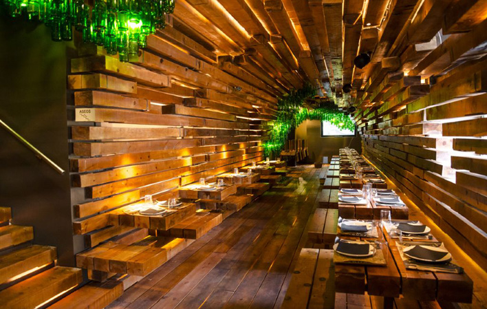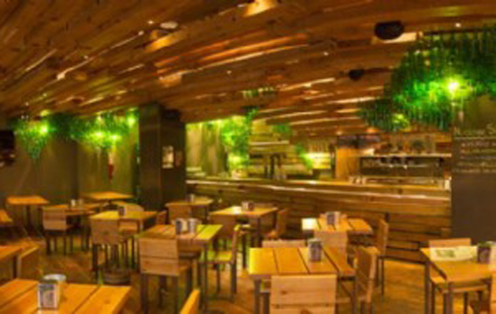 La cidrerie Tierra Astur Parrilla propose une vaste offre gastronomique à base de produits asturiens, avec le gril comme protagoniste.