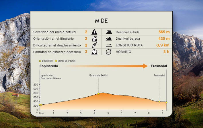 Tra boschi di frassini, querce e castagni, il GR attraversa il comune di Piloña da est a ovest lungo un percorso con magnifiche viste sulla catena montuosa della Sierra del Sellón, che raggiunge la valle del fiume La Marea, sovrastando il piccolo villaggio di Fresnedal.
