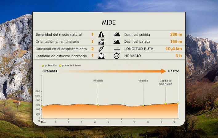 Per iniziare la tappa a Grandas, si deve prendere un sentiero che inizia a sinistra del cartello di partenza, situato sul lato sinistro della strada AS-14 all'ingresso di Grandas. A pochi metri dalla partenza, il sentiero svolta a destra, lasciando a sinistra la fine della tappa precedente.