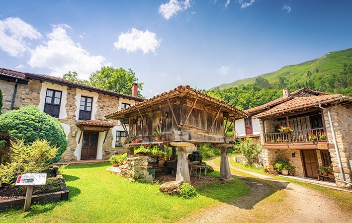 Arrivati a Valle, il sentiero scende per le strette vie del paese, tra granai e case in pietra, lasciando sulla sinistra la chiesa di Santa María Magdalena.