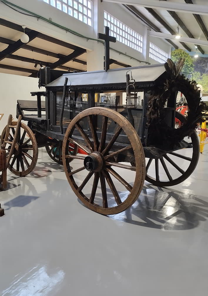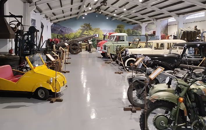 El Museo se divide en cinco salas, y cuenta también con una cafetería y una zona de recepción de visitantes. En la sala central, de unos mil metros cuadrados, alberga la colección de vehículos y automoción, fragua y oficios del hierro, colección sobre la vida y la muerte, maquinaria agrícola, fábrica de gaseosas y diferentes piezas, motores y vehículos que han sido de primordial importancia en la vida rural de Asturias.