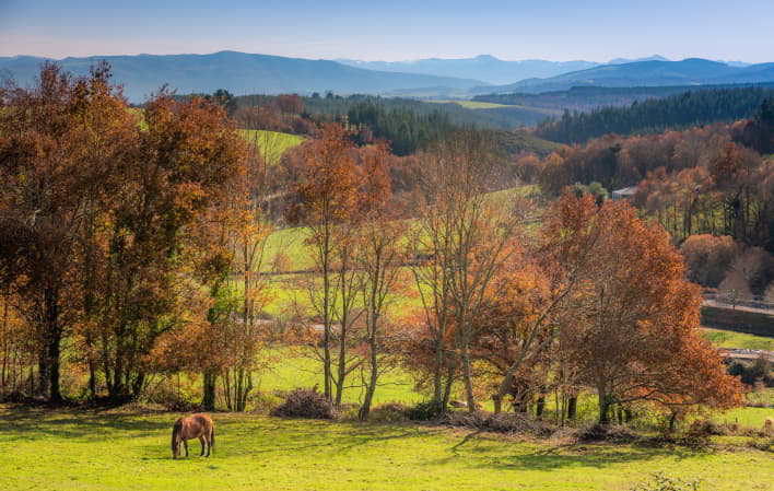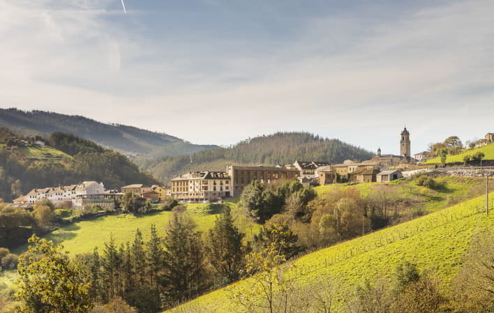 Os três concelhos de Los Oscos foram nomeados Povoações Exemplares(abre num novo separador) em 2016, e não faltam razões para isso: em San Martín, o Palácio Mon e a mansão Guzmán evocam linhagens ilustres que marcaram o futuro da região; por seu lado, a Casa del Marco é um museu etnográfico que preserva a essência da vida rural. Em Vilanova, o mosteiro de Santa Maria, fundado no século XII, é palco da Via Sacra viva, declarada Festa de Interesse Turístico do Principado das Astúrias. Também acolhe a Festa dos Frailes, no início de agosto: um evento coletivo que combina música, arte e património. Em Santa Eufémia, o Ecomuseu do Pão leva o visitante a percorrer o ciclo deste alimento essencial, desde a sementeira até ao forno a lenha. No município de Santa Eulália, mais concretamente em Ferreirela de Baxo, é obrigatória a visita à casa natal do Marquês de Sargadelos, homem ilustre que fundou uma das primeiras fábricas de faiança e ferro fundido em Espanha. Neste mesmo cenário, não há nada como a praia fluvial de Ferreira: uma piscina natural num grande remanso do rio Agüeira, perfeita para um mergulho, canoagem ou simplesmente para relaxar à sombra dos amieiros.