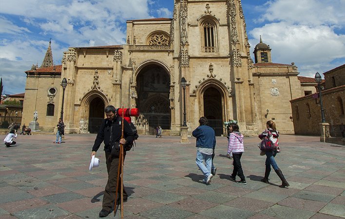 Tras visitar al Señor en la Catedral de San Salvador, se toma dirección norte pasando por calles como la de El Águila, Gascona (famosa por sus sidrerías), Foncalada (donde está la fuente prerrománica) etc, recorriendo la ciudad sin pérdida alguna, ya que en todas sus vías hay una concha que señala el camino.