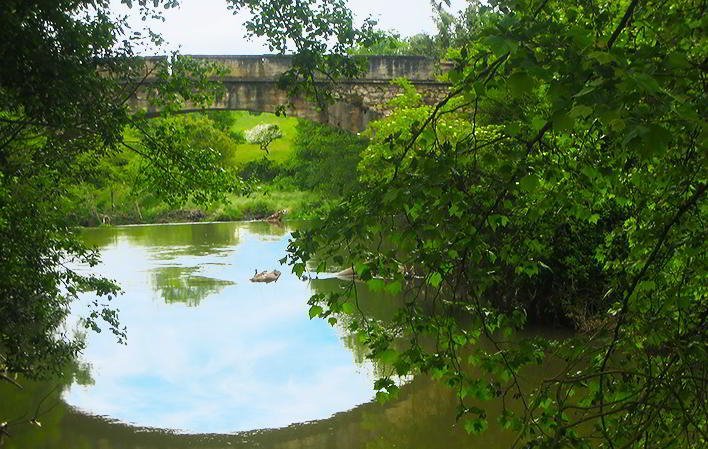Pasando por la avenida del Mar y El Pontón de Vaqueros se sale de la ciudad y, a mano izquierda, se coge una carretera local que lleva a La Estrecha y Cuyences. A medio kilómetro de aquí, dirección norte, se encuentra a mano derecha un camino que pasa por La Granxa, Llaviada, La Pedrera y El Puente Cayés, sobre el río Nora.